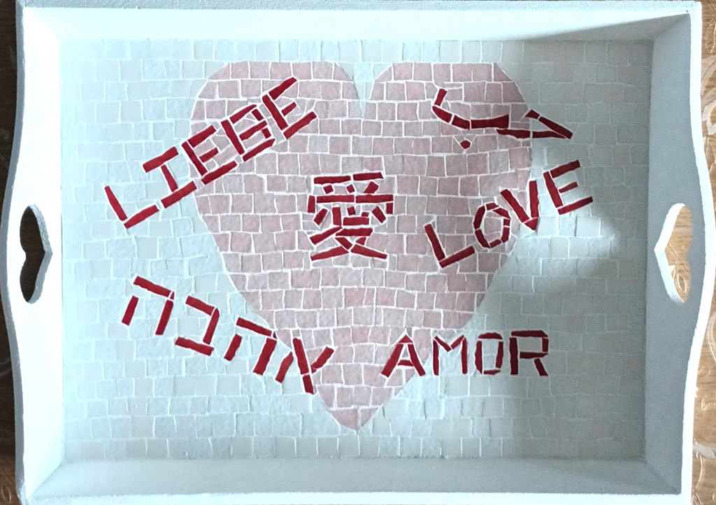Découvrez notre plateau “Amour Universel”, une pièce unique ornée d’un cœur en mosaïque, symbolisant l’amour dans toutes ses formes. Le mot amour, écrit avec plusieurs dialectes, ajoutent une touche culturelle et romantique, parfait pour décorer votre intérieur ou offrir en cadeau. Ce plateau est idéal pour servir vos invités ou comme élément décoratif, apportant chaleur et affection à votre espace.