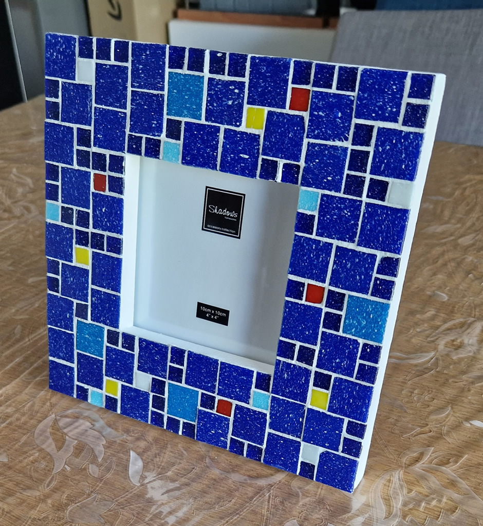 Apportez une touche d’originalité à votre intérieur avec ce cadre photo mosaïque unique. Les carrés bleus et les autres couleurs s’harmonisent parfaitement pour sublimer vos souvenirs. Idéal pour personnaliser votre espace avec style !