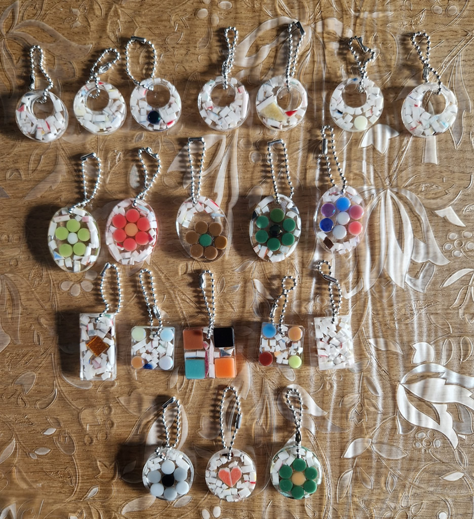 Découvrez notre collection unique de petits porte-clés, parfaits pour personnaliser vos porte-clés ou créer des bijoux originaux. Chaque pièce est soigneusement conçue avec une mosaïque dans la résine, ajoutant une touche d’élégance et de couleur à vos accessoires. Que vous souhaitiez offrir un cadeau significatif ou simplement vous faire plaisir, ces porte-clés sont idéaux pour exprimer votre style unique.